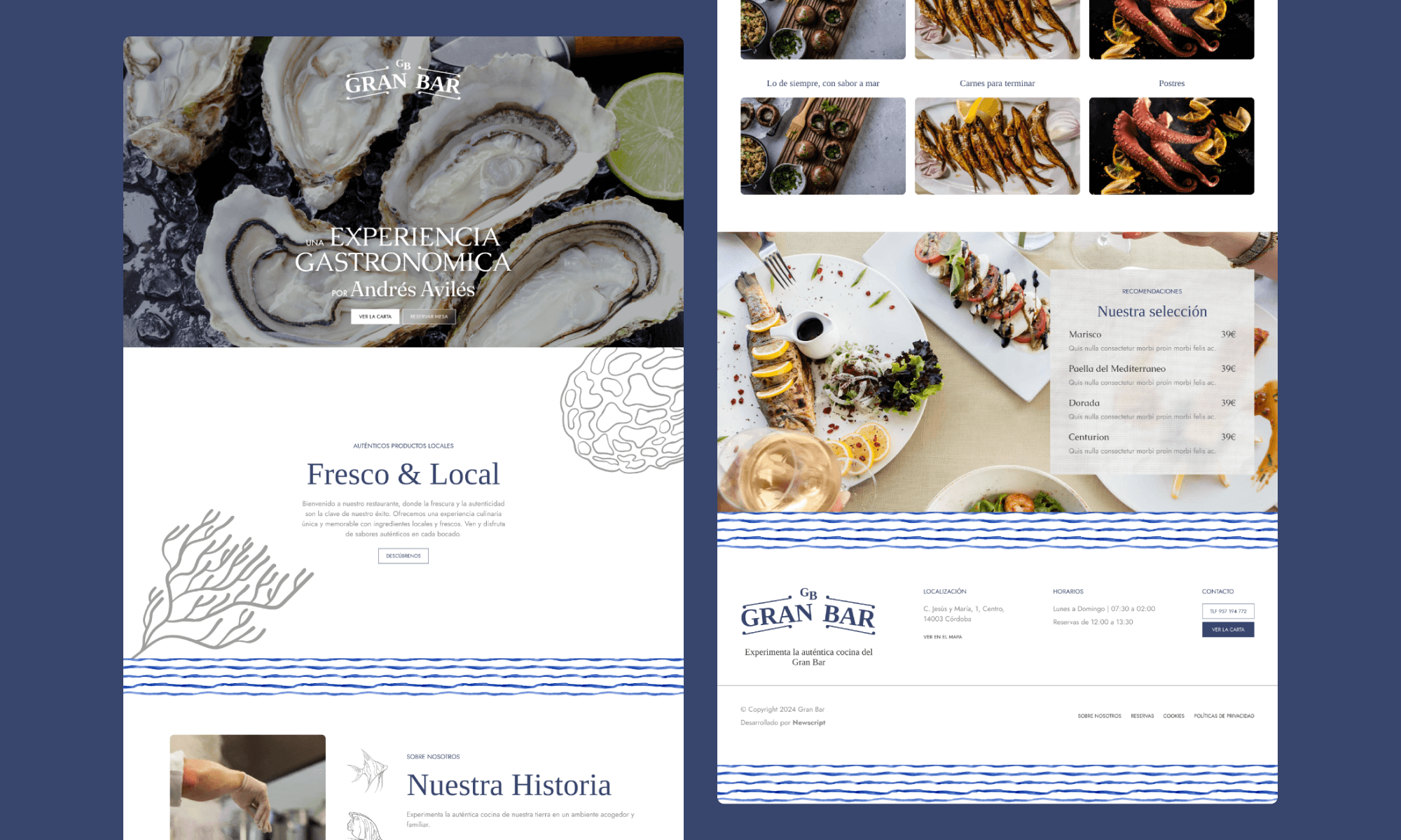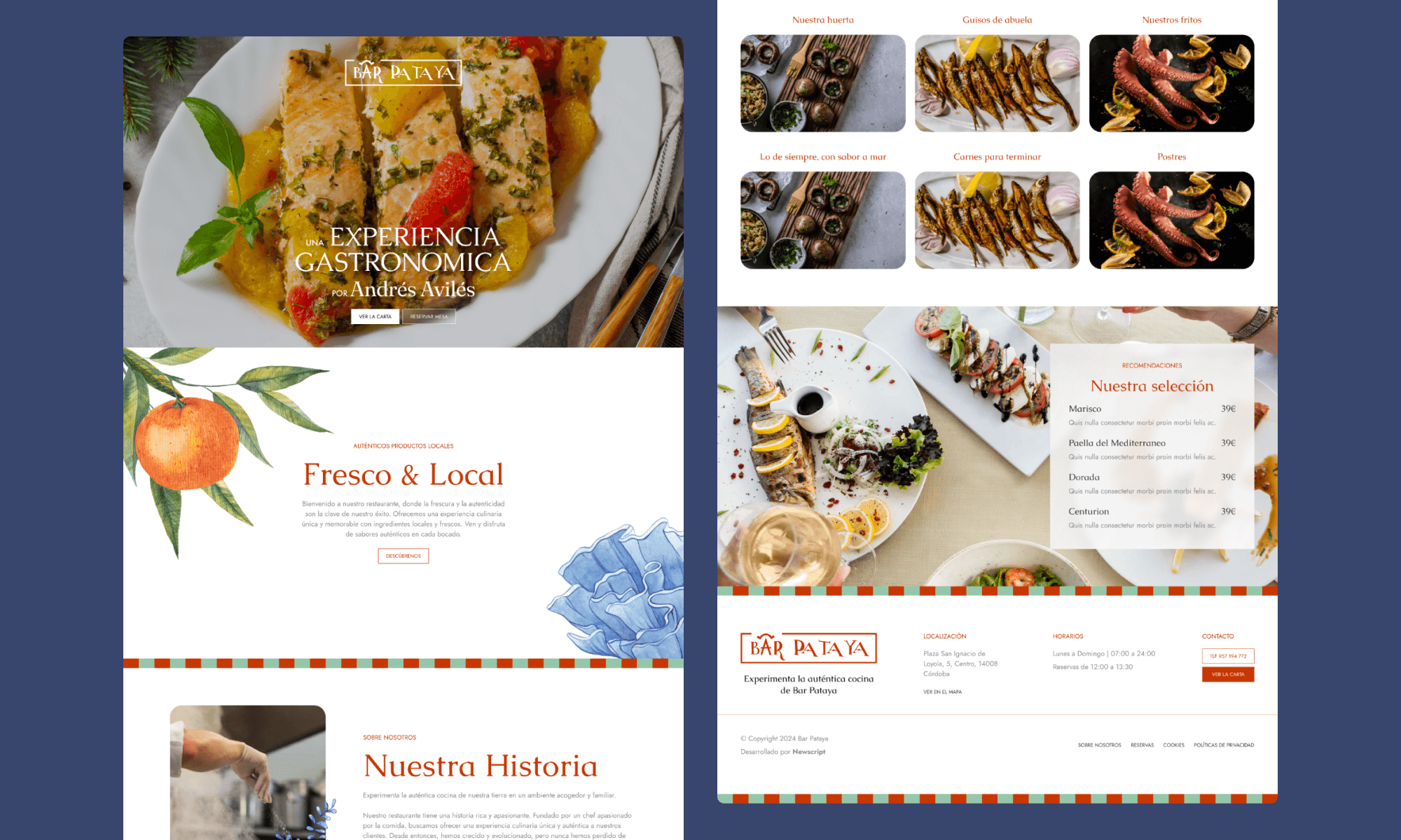 Designing two pages with similar sections helped users navigate the page and added cohesion to the branding. Restaurants had different vibes, clients and products, so their personalities had to reflect that.