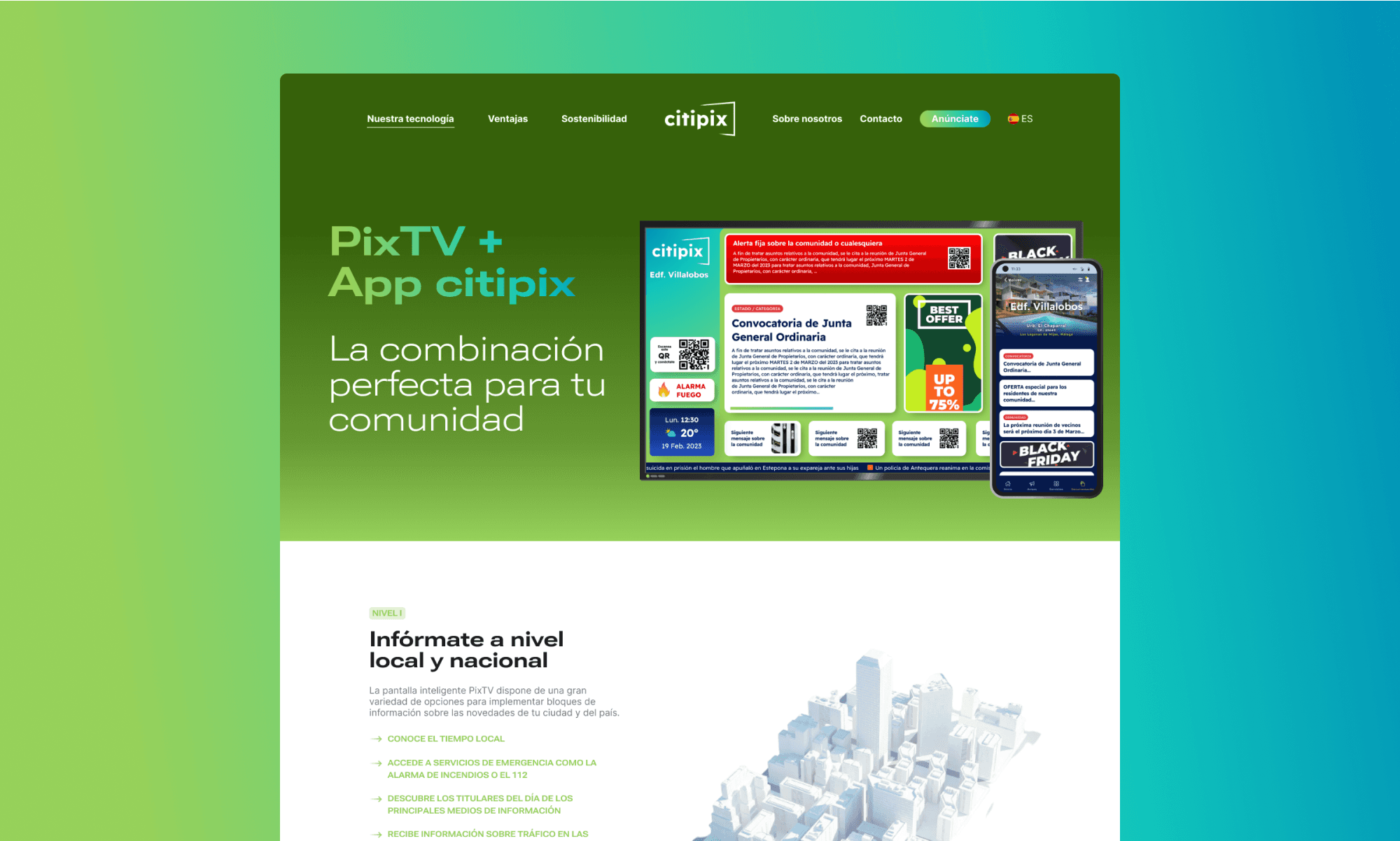 Citipix provides digital screens for housing communities. They display information about the community and help local businesses advertise.
