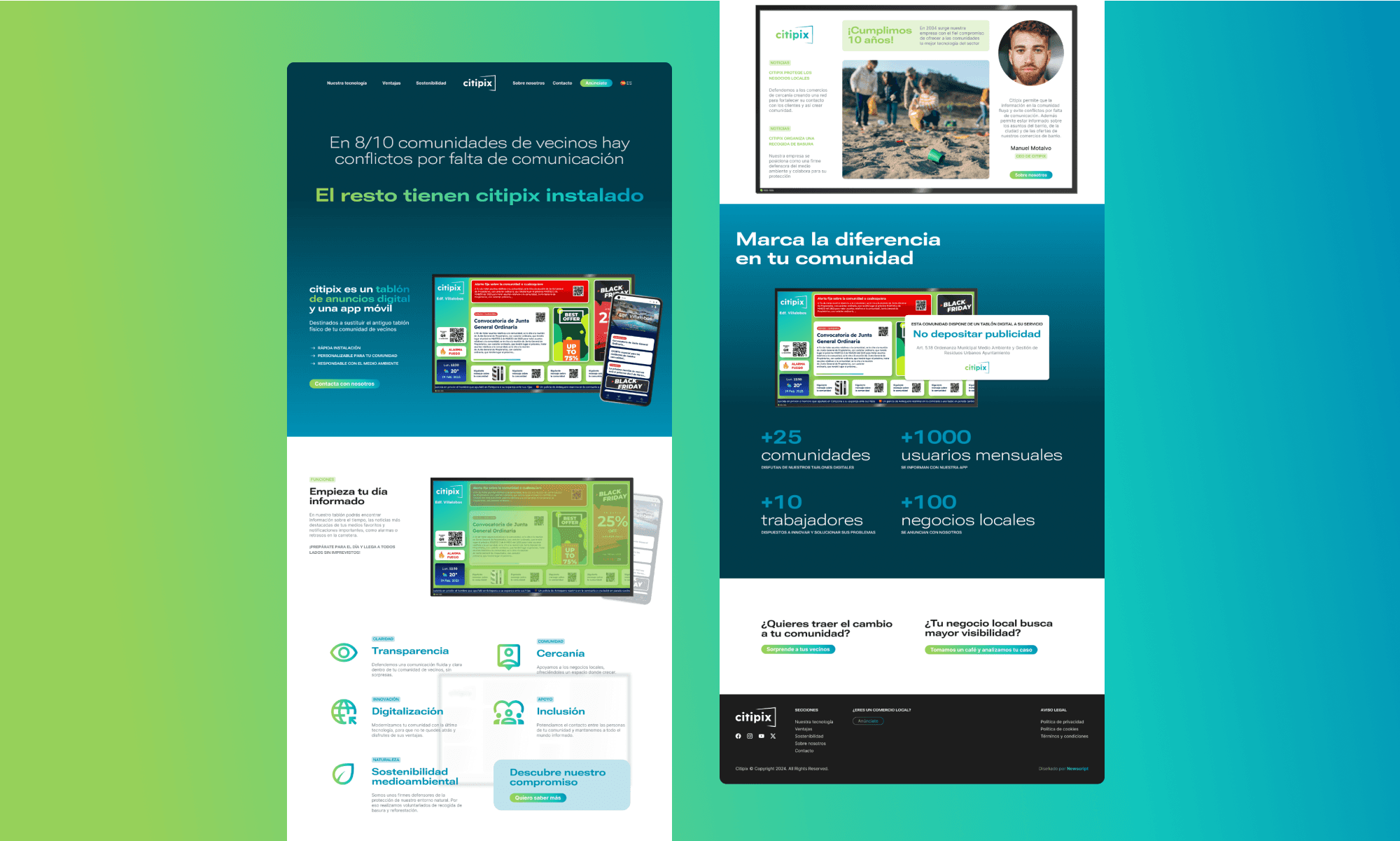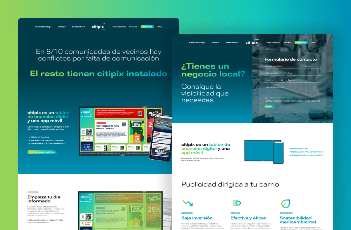 Citipix had two business lines: selling screens and offering local business advertising. The webpage needed to reflect both ideas. The webpage was designed for neighbours who needed the screens, and a landing page was created to promote their advertising services.