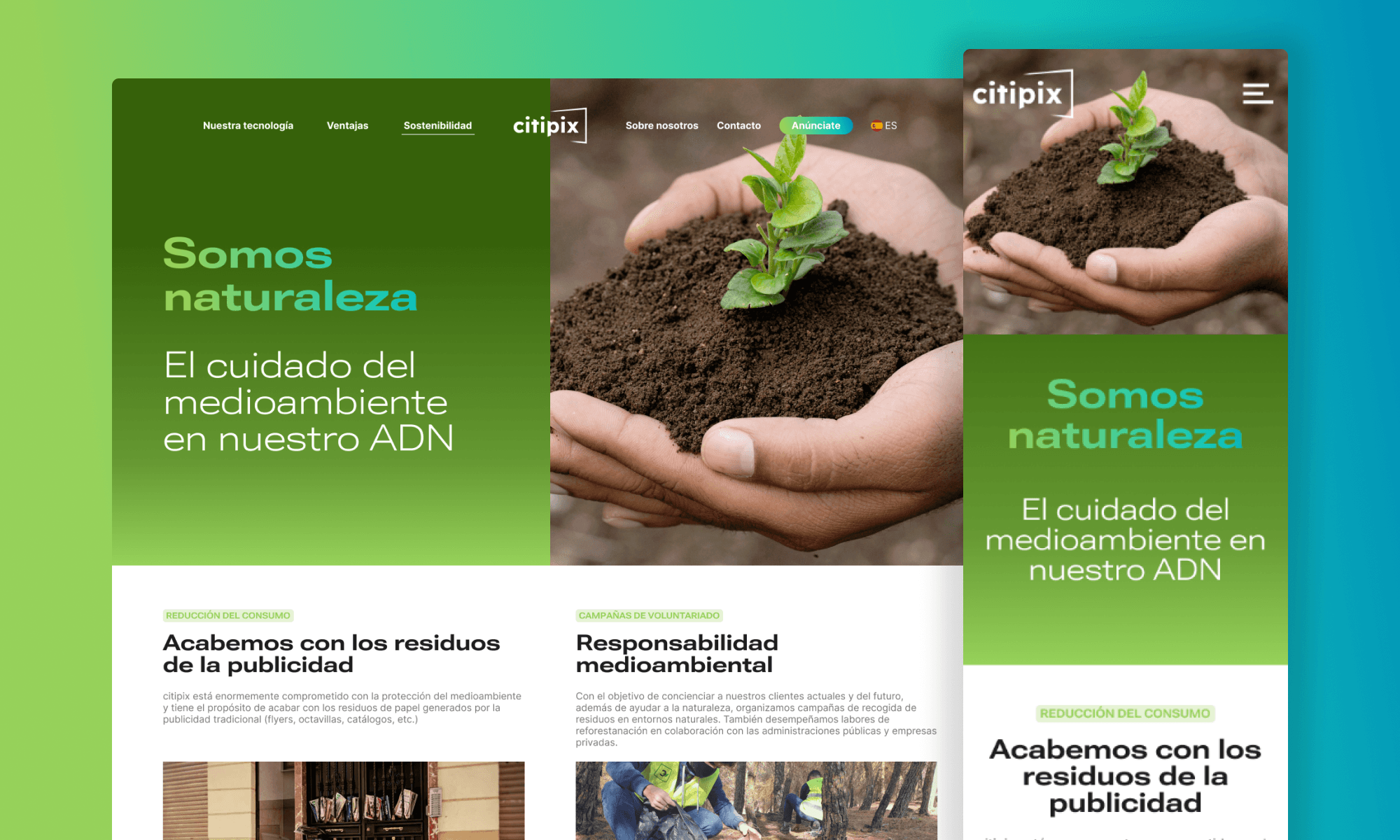 I created a new image for Citipix branding. Based on the company values and their desire to be seen as a modern tech business, a gradient palette was chosen. The page was designed to be interactive, introducing Citipix screens and apps in an innovative way.