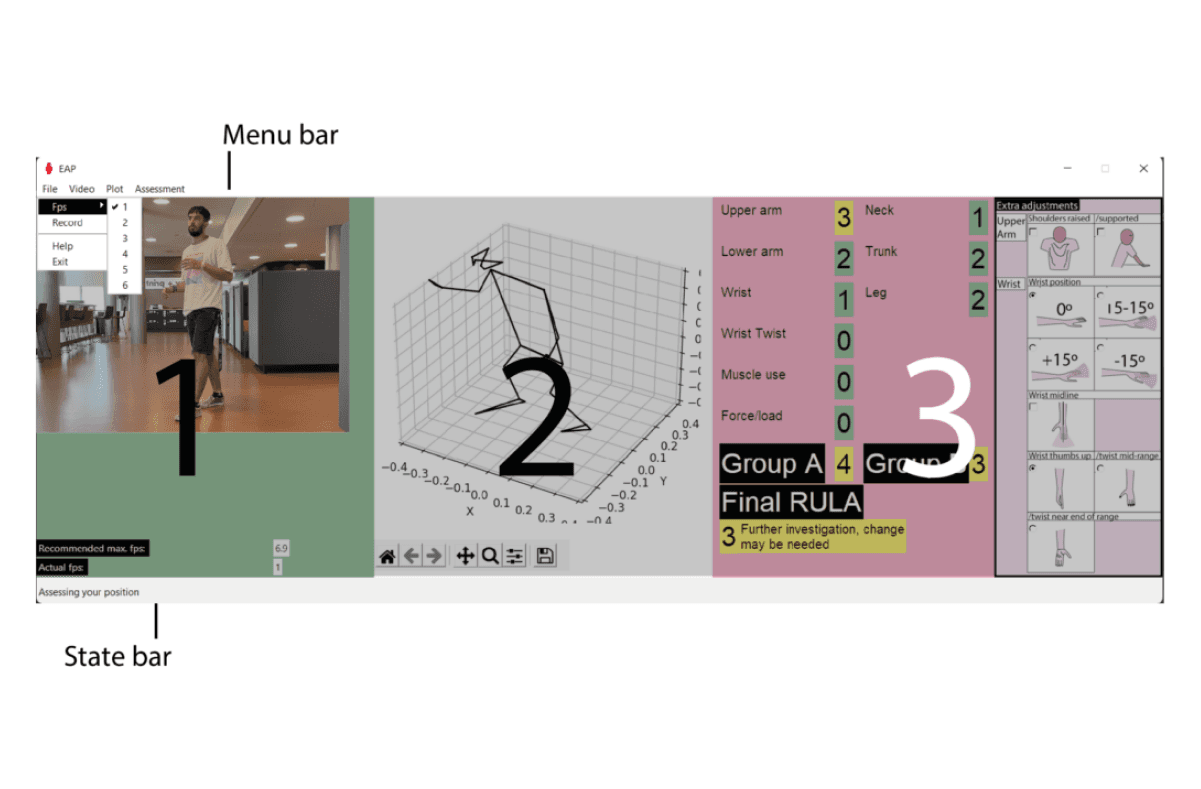 EAP aims to democratize ergonomics assessments, addressing a significant challenge faced by small companies who struggle to afford evaluations for their workers due to resource constraints. By using EAP, all that is required is a camera and a computer to conduct these assessments. Workers themselves can perform them by recording their actions and analyzing them later, or they can be assessed in real time by a colleague. This system provides preliminary assessments, serving as an indicator for more specialized ones if necessary.