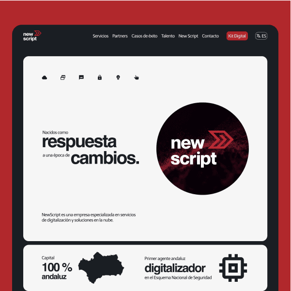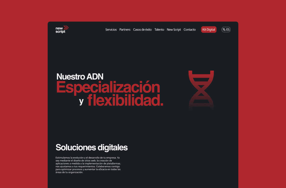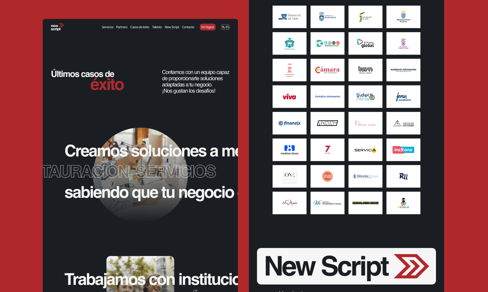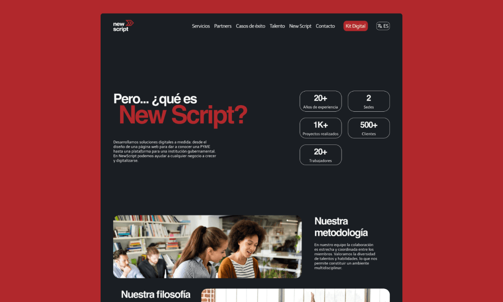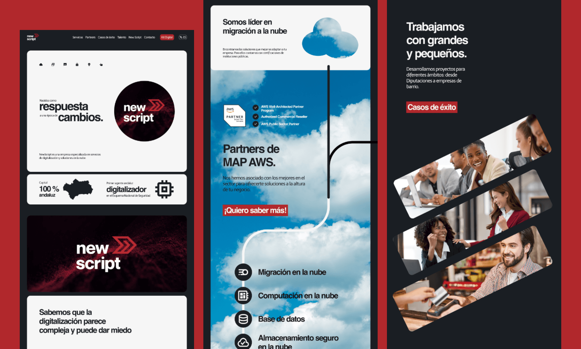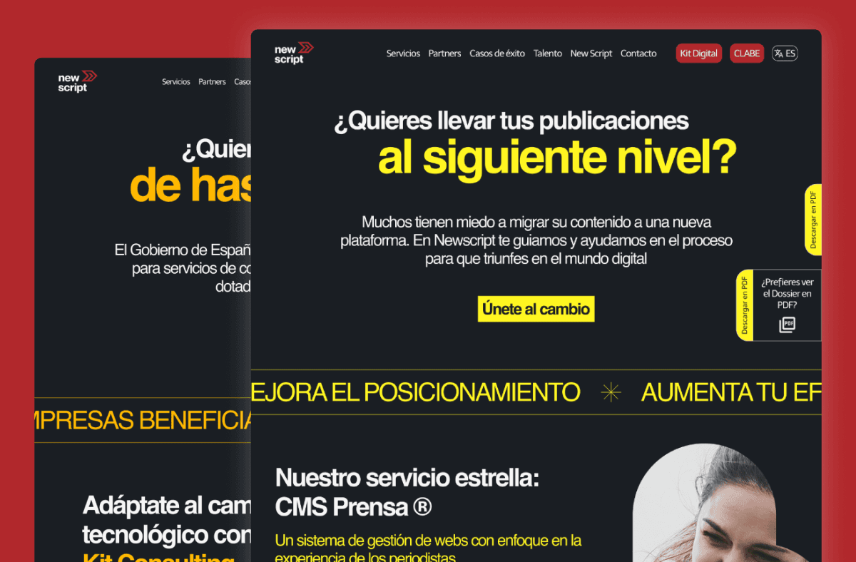 The new page style followed Newscript's principles of innovation and evolution. It included animations and large, eye-catching headings. The colours were kept the same to keep the brand's essence.