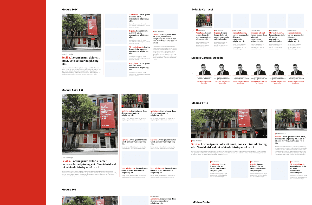To create the newspaper page, several modules were designed. These modules formed the basis of the page, as they were combined to create different structures. Additionally, several pages were created to display the articles, publicity plans or saved news.