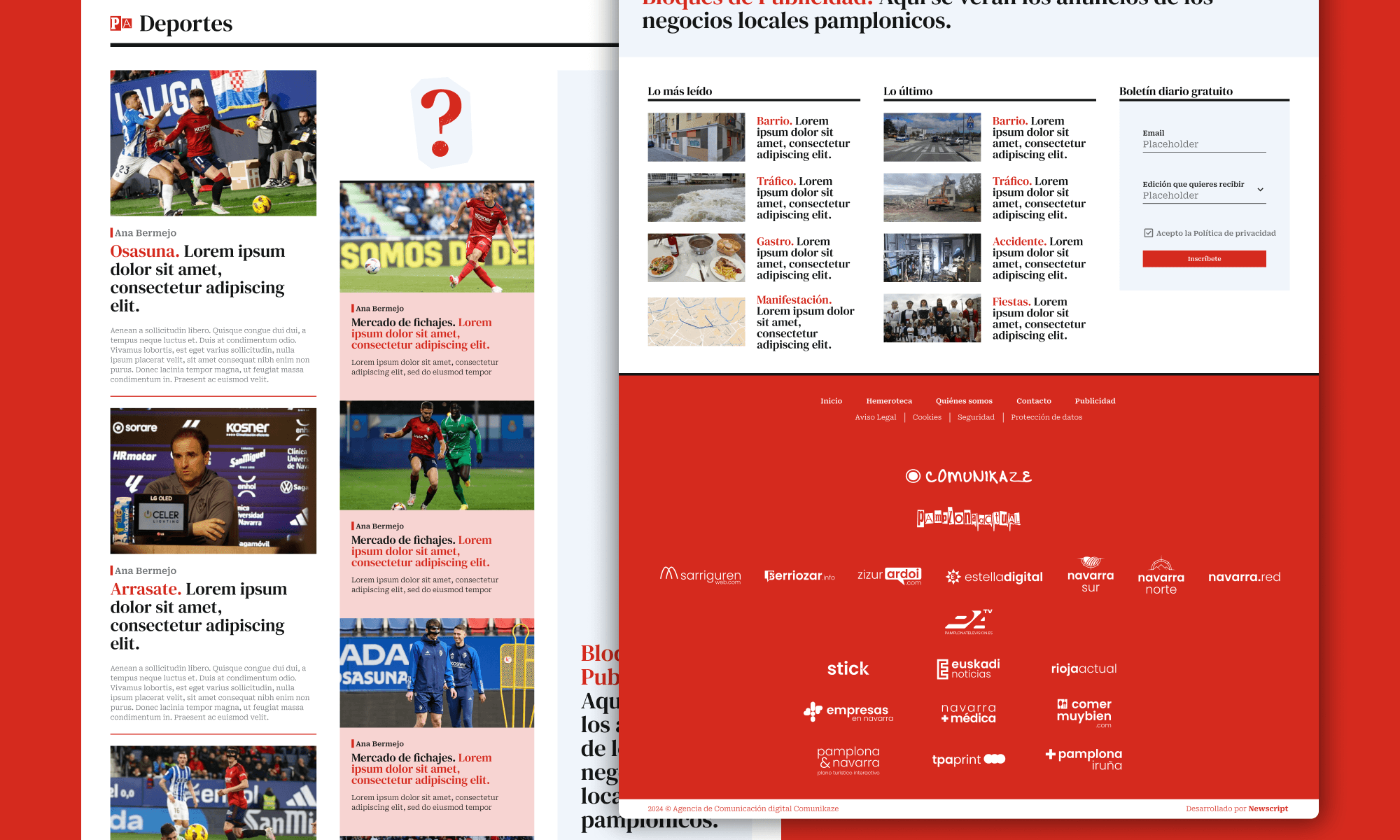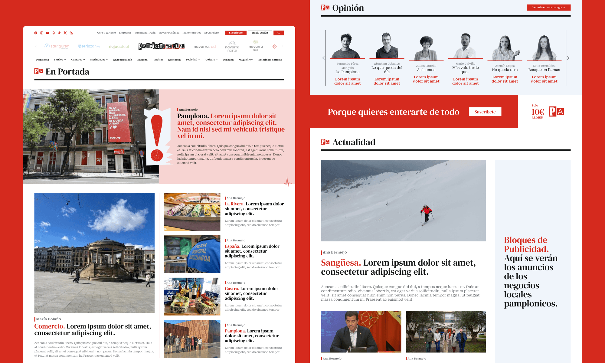 Pamplona Actual is a digital newspaper covering news from the city of Pamplona and the surrounding area. In order to improve the usability and attractiveness of its webpage, a redesign was required. Our team created a modern and intuitive design inspired by traditional newspaper formats and the client's preferences.