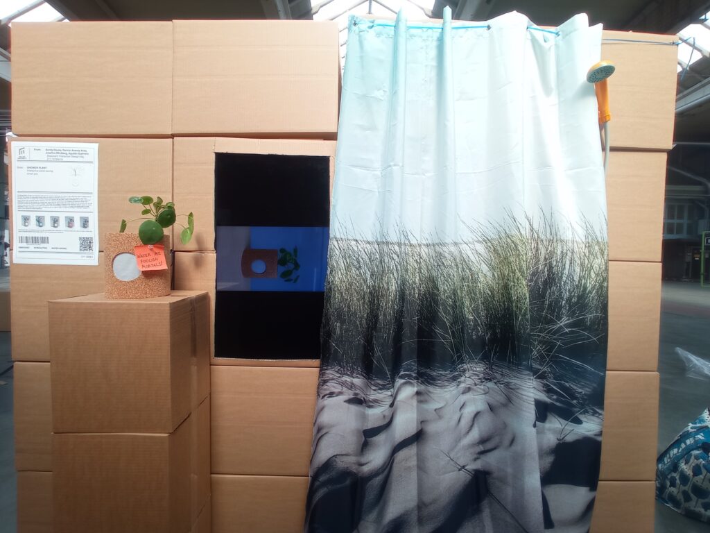 The Shower plant is an interactive pot designed to foster an emotional connection with users and inspire them to care for the environment. By displaying emotions, it aims to influence behavior towards sustainability, specifically reducing water consumption. The design of the Shower plant encompasses considerations for both human users and the broader ecosystem, acknowledging the importance of designing for more than just humans.
