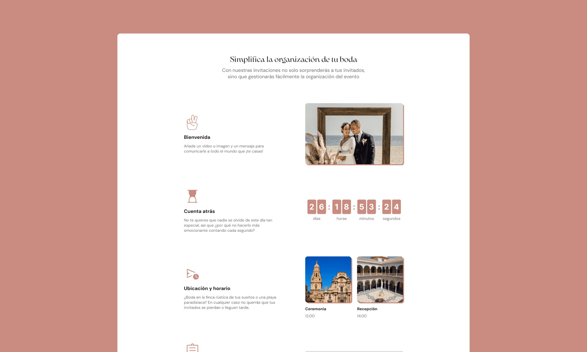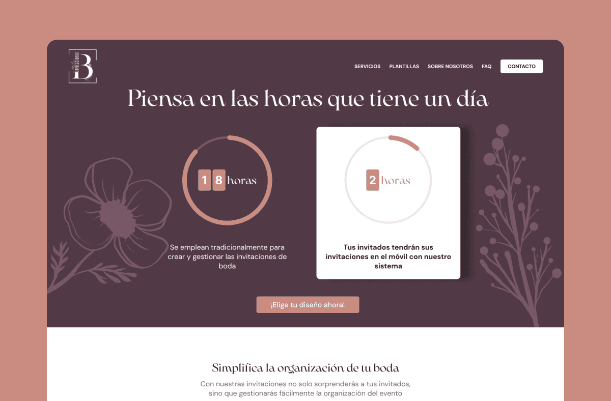 A webpage was created to announce the services this interactive invitation brought to customers. As it was a new service, it was important to focus on the benefits, making wedding planning easier for the bride and groom.